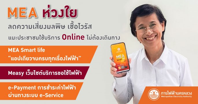 ท่ามกลางสถานการณ์ไวรัสโคโรนาและฝุ่นพิษซึ่งกระทบต่อสุขภาพ MEA ขอเสนอระบบชำระค่าบริการไฟฟ้าผ่านช่องทาง Online ต่างๆ ซึ่งผู้ใช้ไฟฟ้าไม่จำเป็นต้องเดินทางออกนอกบ้าน อยู่ที่ไหนก็ใช้บริการได้สะดวกรวดเร็วทันสมัย