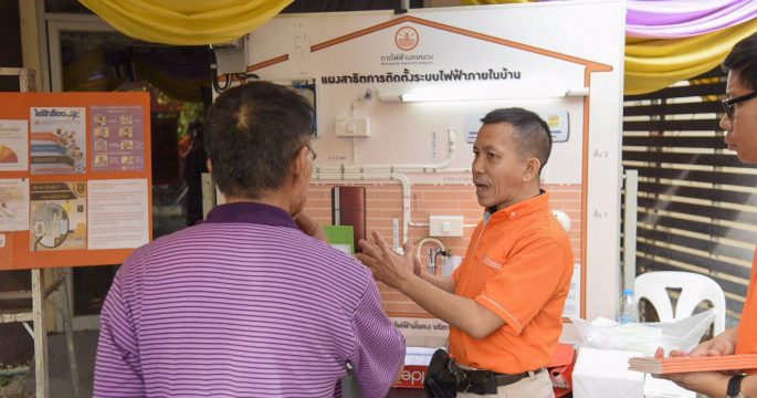 นายโสพัส สังขกรมานิต ผู้อำนวยการไฟฟ้าเขตสามเสน การไฟฟ้านครหลวง (MEA) เป็นประธานในการส่งมอบงานปรับปรุงระบบไฟฟ้า พร้อมเปิดบูธให้ความรู้เรื่องความปลอดภัยในการใช้ไฟฟ้าอย่างมีประสิทธิภาพและปลอดภัย ณ วัดจันทร์ อ.บางกรวย จ.นนทบุรี ภายใต้กิจกรรม “ทำนุบำรุงวัด ประหยัดทรัพย์ให้ประชาชน”