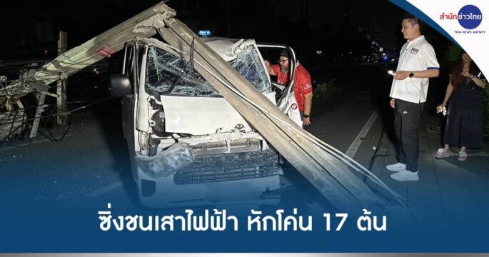 รถตู้ ซิ่งชนเสาไฟฟ้า หน้าปากซอยศรีบูรพา 16 ทำเสาไฟฟ้าหักโค่น 17 ต้น รถยนต์เสียหาย 5 คัน เจ็บ 8 คน ชาวบ้านเขตบางกะปิ กว่า 100 หลังคาเรือนไม่มีไฟฟ้าใช้