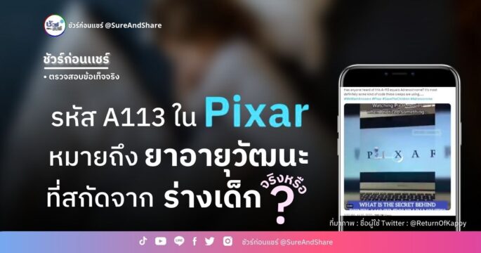 ชัวร์ก่อนแชร์: รหัส A113 ในการ์ตูน Pixar คือยาอายุวัฒนะที่สกัดจากร่างเด็ก จริงหรือ?