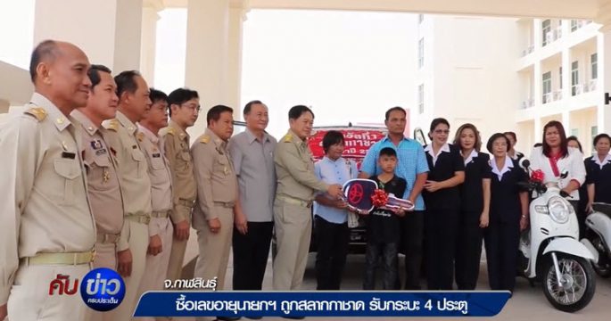 ผู้ว่าฯกาฬสินธุ์ มอบโชคใหญ่ ให้ผู้ช่วยผู้ใหญ่บ้านหมู่ 1 ต.โนนบุรี อ.สหัสขันธ์ ดวงเฮงสุดๆ ถูกรางวัลสลากกาชาด รับกระบะ 4 ประตู เผยซื้อเพียง 2 ใบ เลือกซื้อเลขมงคลอายุ พล.อ.ประยุทธ์ นายกรัฐมนตรี