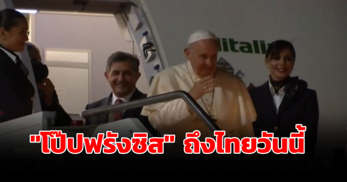 สมเด็จพระสันตะปาปาฟรังซิส ทรงออกเดินทางจากกรุงโรมของอิตาลี เมื่อคืนนี้ เสด็จเยือนไทย ระหว่างวันที่ 20-23 พ.ย. ซึ่งตามกำหนดการจะเสด็จถึงท่าอากาศยานทหาร 2 กองบิน 6 ดอนเมือง ในเวลา 12.30 น. ช่อง 9 MCOT HD หมายเลข 30 ถ่ายทอดสด
