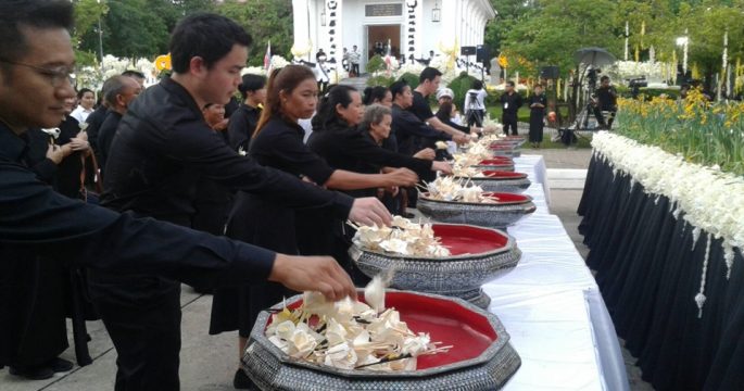 ข้าราชการ ประชาชน ร่วมถวายดอกไม้จันทน์ ที่วัดพระรามเก้ากาญจนาภิเษกวรวิหาร ประชาชนหลายร้อยรอต่อแถวจนล้นถนนด้านหน้า