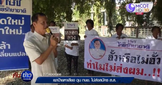 นายปฐมภพ ปราการชัยนาคร เผาป้ายหาเสียงพรรคไทยรักษาชาติ ฉุนพรรคไม่ส่งสมัคร ส.ส. เขต 1 กำแพงเพชร