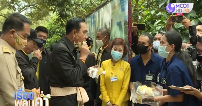 นายกรัฐมนตรี ลงพื้นที่ศรีสะเกษ ทดลองตัดทุเรียนจากต้น พร้อมชิมทุเรียนภูเขาไฟ เอ่ยปากชมรสชาติอร่อย