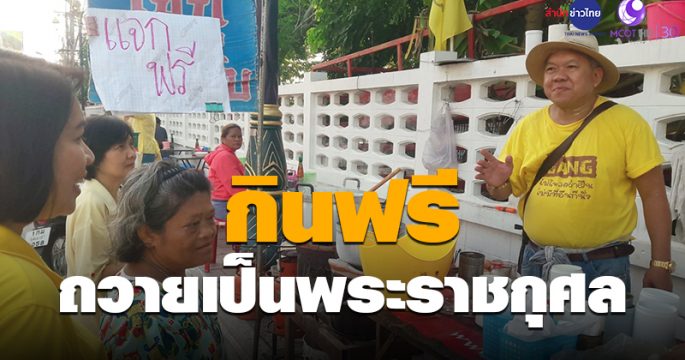 พ่อค้าขายโจ๊กและพ่อค้าขายลูกชิ้นทอด ร่วมใจทำความดีเพื่อพ่อหลวง รัชกาลที่ 9 แจกให้ประชาชนกินฟรี แถมใส่ถุงกลับไปกินที่บ้านด้วย