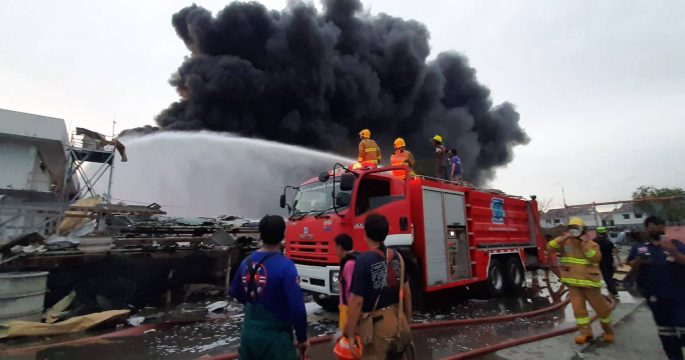 นายอำเภอบางพลี สั่งจัดแนวกันพื้นที่โรงงานผลิตโฟม ระวังเพลิงปะทุขึ้นอีก พร้อมขอความร่วมมือทุกฝ่ายปฏิบัติตามคำแนะนำ