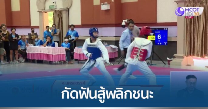 การแข่งขันกีฬาเยาวชนแห่งชาติ ครั้งที่ 38 “พรภวิษย์” จอมเตะจาก กทม. กัดฟันสู้พลิกชนะ “ณัฐพร” จากนครปฐม คว้าเหรียญทองเทควันโด รุ่นน้ำหนักไม่เกิน 51 กก.