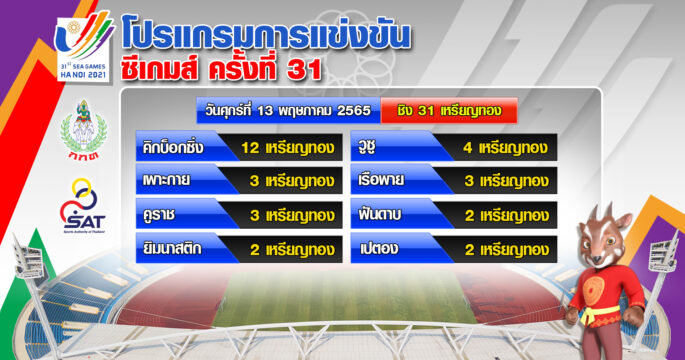 ร่วมส่งแรงใจ เชียร์ทัพนักกีฬาไทย ในศึกซีเกมส์ ครั้งที่ 31 ที่ประเทศเวียดนาม วันนี้ชิงชัย 31 เหรียญทอง