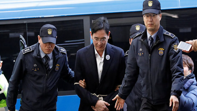 ประธานโดยพฤตินัยของซัมซุงกรุ๊ป กลุ่มธุรกิจใหญ่ที่สุดของเกาหลีใต้เดินทางเข้าให้ปากคำที่สำนักงานอัยการพิเศษในกรุงโซลในสภาพที่ถูกสวมกุญแจมือและเชือกมัดตัว