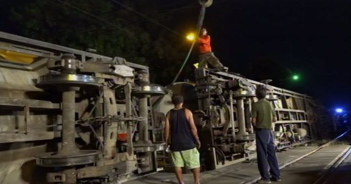 เร่งเคลียร์รถไฟตกราง 9 ตู้ กลางเมืองโคราช เหตุหมอนไม้ทรุดตัว เร่งถ่ายโอนผู้โดยสารวุ่นทั้งคืน