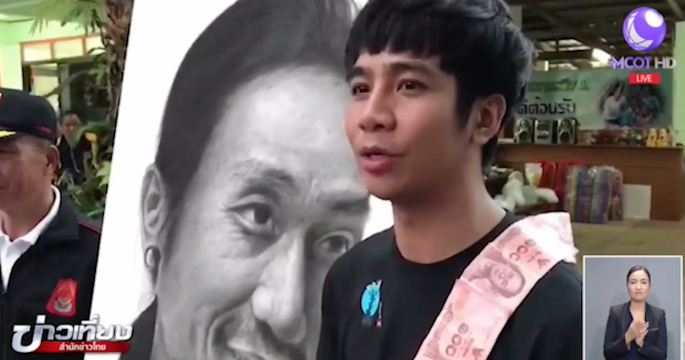 อาจารย์เฉลิมชัย และคณะศิลปินเชียงรายวาดภาพด้วยถ่านไม้เกือบ 100 ภาพ ไปประมูลนำเงินรายได้มอบให้ “ตูน บอดี้สแลม”
