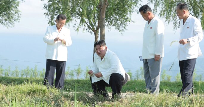 นายคิม จอง อึน ผู้นำสูงสุดของเกาหลีเหนือเดินทางไปเยี่ยมฟาร์มเกษตรกรรมที่ได้รับผลกระทบจากพายุไต้ฝุ่นและกำกับดูแลปฎิบัติการของเฮลิคอปเตอร์กองทัพในการพ่นยาฆ่าแมลง ซึ่งเป็นความพยายามในการดูแลรักษาพืชที่สำคัญของประเทศ