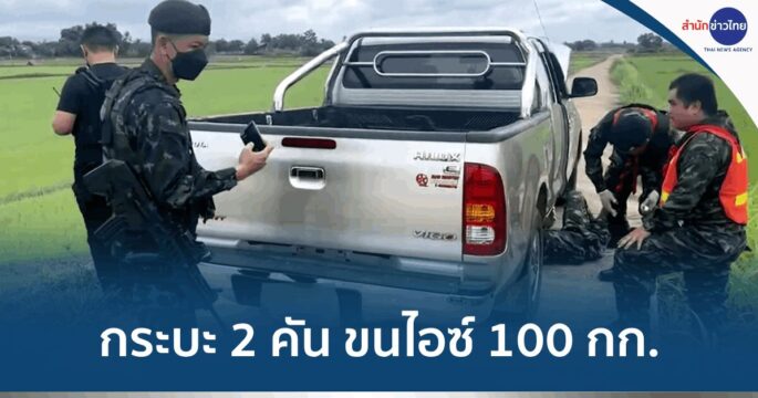 กองกำลังผาเมืองสกัดจับกระบะ 2 คัน ขนไอซ์รวม 100 กก. บนถนนสาย แม่สาย-เชียงแสน จ.เชียงราย คาดลอบขนมาจากสถานบันเทิงตรงข้ามประเทศเพื่อนบ้าน