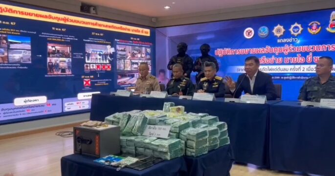 ป.ป.ส 21 ก.ค. – ป.ป.ส.ขยายผลปฏิบัติการตัดไฟแต่ต้นลมครั้งที่ 2 จับกุมผู้ร่วมขบวนการค้ายาเสพติดเครือข่ายนายไอ ยี่ ซอ รวบผู้ต้องหา 5 ราย คีตามีน 150 กก. ไอซ์ 5 กก. ในพื้นที่สมุทรปราการ ยึดทรัพย์กว่า 3.3 ล้านบาท พล.ต.ท.ภาณุรัตน์ หลักบุญ เลขาธิการ ป.ป.ส. พร้อมด้วย นายปฤณ เมฆานันท์ ผู้อำนวยการสำนักปราบปรามยาเสพติด สำนักงาน ป.ป.ส. , ผู้แทนหน่วยข่าวกรองทางทหาร หน่วยบัญชาการสงครามพิเศษทางเรือ กองบังคับทหารอากาศดอนเมือง และศูนย์ปฏิบัติการกองทัพบก แถลงผลการจับกุมผู้ต้องหา 5 คน คีตามีน 150 กก. ไอซ์ 5 กก. เหตุเกิดที่ โกดังเก็บพักยาเสพติดในพื้นที่ จ.สมุทรปราการ ขยายผลตรวจค้นบ้านพักผู้ต้องหารวม 5 จุด (จ.สมุทรปราการ, จ.พะเยา) ตรวจยึดอายัดทรัพย์สิน […]