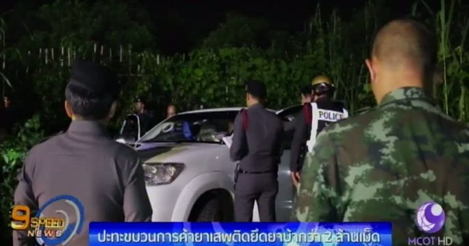 เจ้าหน้าที่เข้าตรวจสอบจุดเกิดเหตุบริเวณถนนเลียบชายแดนบ้านผาหมี-บ้านโป่งผา อำเภอแม่สาย จังหวัดเชียงราย หลังเกิดเหตุยิงปะทะระหว่างเจ้าหน้าที่กับขบวนการค้ายาเสพติด