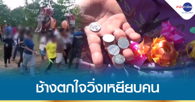 ช้างในขบวนแห่นาคตื่นตกใจ ขณะชาวบ้านเข้าแย่งเงินโปรยทาน ทำให้ช้างวิ่งฝ่าฝูงชนออกจากขบวน และเหยียบชาวบ้านบาดเจ็บเกือบ 10 คน หนึ่งในนั้นอาการสาหัส