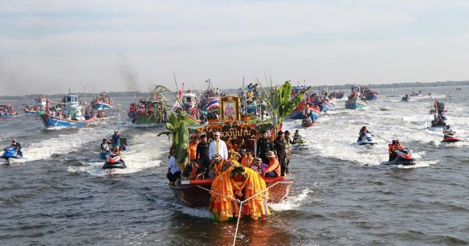 ฉะเชิงเทรา 30 ต.ค.- เริ่มวันแรก! เรือแห่พระพุทธโสธรล่องแม่น้ำบางปะกง ตามประเพณีเก่าแก่ของฉะเชิงเทรา สืบทอดมานับ 100 ปี ท่ามกลางประชาชนมารอสักการะขอพรตลอดสองฟากฝั่ง และวันพรุ่งนี้ยังมีแห่อีกวัน วันนี้ (30 ต.ค.63) ที่บริเวณริมท่าน้ำวัดโสธรวรารามวรวิหาร จ.ฉะเชิงเทรา นายไมตรี ไตรติลานันท์ ผู้ว่าราชการจังหวัด เป็นประธานพิธีเปิดขบวนแห่พระพุทธโสธรทางน้ำ ประจำปี 2563 ระหว่างวันที่ 30-31 ต.ค. โดยมีพระราชภาวนาพิธาน ผู้ช่วยเจ้าอาวาสวัดโสธรวรารามวรวิหาร เป็นประธานฝ่ายสงฆ์ พร้อมข้าราชการและประชาชนหลายภาคส่วนเข้าร่วมในพิธีจำนวนมากทั้งนี้ ในวันแรกของขบวนเรือจะล่องผ่าน อ.บ้านโพธิ์ และ อ.บางปะกง ส่วนพรุ่งนี้ล่องผ่านเขต อ.เมืองฉะเชิงเทรา อ.คลองเขื่อน และ อ.บางคล้า สำหรับประเพณีการแห่พระพุทธโสธรทางน้ำ เป็นประเพณีที่ปฏิบัติสืบต่อกันมากว่า 100 ปี ตามความเชื่อว่าเมื่อครั้งนั้นเกิดโรคระบาดทางน้ำ ชาวบ้านร่วมใจกันบนบานองค์พระพุทธโสธรให้ช่วยขจัดปัดเป่าโรคภัย และอัญเชิญองค์พระพุทธโสธรแห่ทางน้ำ.-สำนักข่าวไทย