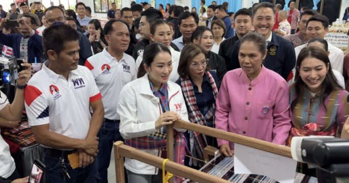“แพทองธาร” ลงพื้นที่สำรวจตลาดซอฟต์พาวเวอร์ จ.ขอนแก่น ชมสินค้าจากชุมชน และสั่งผ้าฝ้ายจากกลุ่มทอผ้าไหมอีรี่ จำนวน 2 ชิ้น