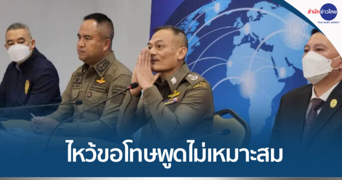 ผบช.สตม.ไหว้ขอโทษสังคมและนักข่าวสาวช่องดัง หลังใช้วาจาไม่เหมาะสม ย้ำไม่มีเจตนาทำลายความรู้สึกของนักข่าว แค่อยากให้บรรยากาศการแถลงข่าวเป็นกันเอง ไม่เคร่งเครียด พร้อมปฏิเสธเดินทางไปเจรจา “เบนซ์ เดม่อน” ที่ฮ่องกง