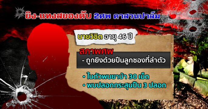 ยิงแทงคาสวนปาล์มน้ำมัน อ.ชะอวด จ.นครศรีธรรมราช ตายสยอง 2 ราย ตำรวจคุมตัวผู้ต้องสงสัยแล้ว 1 คน ยังให้การวกวน บอกแค่แทง 1 ราย แต่ไม่ได้ยิงอีกราย