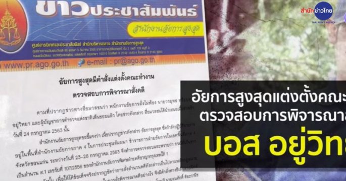 อัยการสูงสุดสั่งตั้งคณะทำงาน 7 คน ตรวจสอบสำนวนคดี “บอส อยู่วิทยา” คลายปมสงสัยสั่งไม่ฟ้องคดีขับรถชนตำรวจ สน.ทองหล่อ เสียชีวิต เมื่อปี 2555