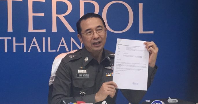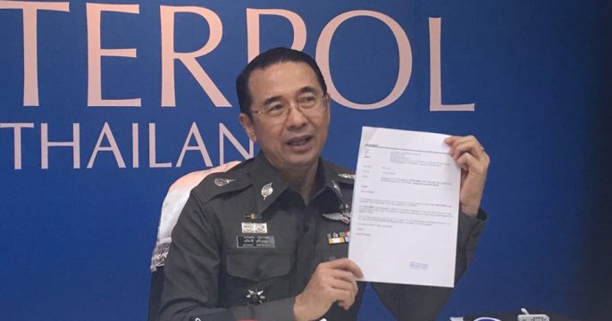 หัวหน้าตำรวจสากลไทย ขอตำรวจสากลสิงคโปร์ตรวจสอบ”บอส วรยุทธ”ยังอยู่สิงคโปร์หรือไม่หลังพบเครื่องบินส่วนตัวจอดอยู่ เร่งประสานองค์การตำรวจสากลออกหมายน้ำเงินแทนหมายแดง เพื่อต้องการปักหมุดที่อยู่ผู้ต้องหา