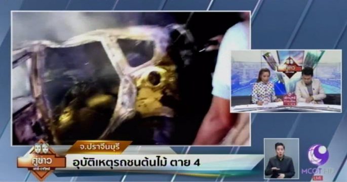 ทหารอากาศพาครอบครัวกลับจาก กทม. รถเสียหลักชนต้นไม้ข้างทางเกิดไฟลุกคลอกหญิงสาวดับ 1 ไปเสียชีวิตที่ ฃโรงพยาบาลอีก 3 หนึ่งในนั้นเป็นเด็กหญิงวัย 10 เดือน