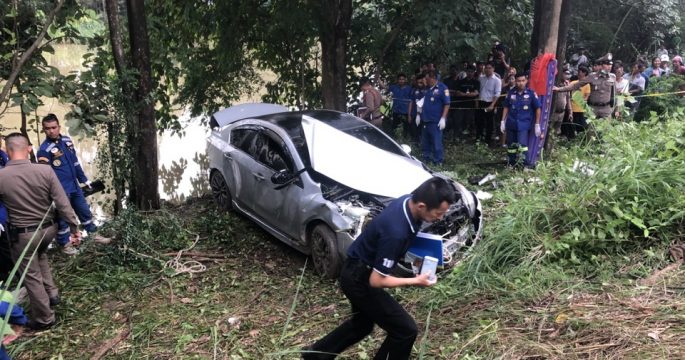 ลูกสาวอดีตรองปลัด ศธ. ขับรถชนเสาไฟฟ้า ก่อนเสียหลักพุ่งตกคลอง จ.นนทบุรี จมมิดทั้งคัน เจ้าตัวเสียชีวิต และมีผู้บาดเจ็บอีก 3 คน