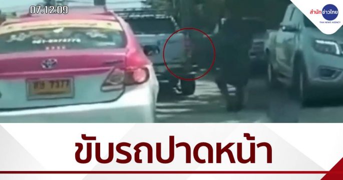 หนุ่มขับกระบะหัวร้อน คว้ามีดสปาต้าลงมาจะฟันโชเฟอร์แท็กซี่ หลังขับปาดแซงกัน ไม่มีใครบาดเจ็บ