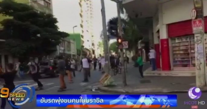 รถยนต์คันหนึ่งพุ่งเข้าใส่บรรดานักสเกตบอร์ดที่กำลังเล่นสเกตบอร์ดฉลองวันสเกตบอร์ดโลกในบราซิล มีผู้ได้รับบาดเจ็บเล็กน้อย 3 คน