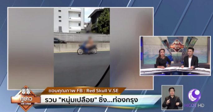 เผยคลิปชายไม่สวมเสื้อผ้าขี่รถจักรยานยนต์ยี่ห้อฮอนด้าเวฟสีน้ำเงิน ไม่ติดแผ่นป้ายทะเบียน อยู่บนถนนวิภาวดีรังสิต หน้าสนามบินดอนเมือง เปลือยกายขี่รถอยู่เลนขวาสุดอย่างเหน็บหนาว ก่อนถูกรวบและควบคุมตัวไว้ในห้องขังและแจ้งข้อหา