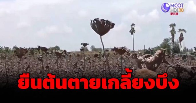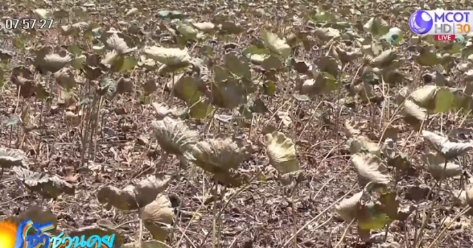 ที่ จ.อ่างทอง นาบัวหลายสิบไร่ขาดน้ำยืนต้นตายเกลี้ยง หลังภัยแล้งรุนแรงที่สุดในรอบ 10 ปี เกษตรกรเดือดร้อนสูญเงินลงทุน และขาดรายได้เลี้ยงครอบครัว