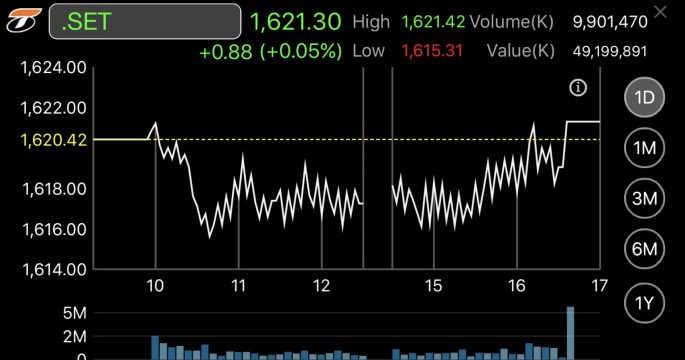 หุ้นไทยบวกเล็กน้อย 0.88 จุด ปรับฐาน ตลาดยังขาดปัจจัยใหม่ ติดตามปัญหาตึงเครียดคาบสมุทรเกาหลี