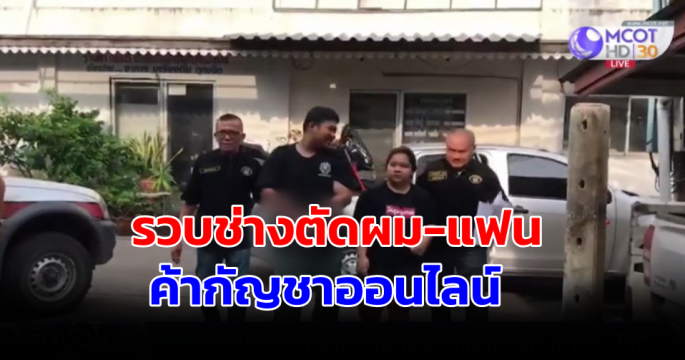 หนีไม่รอด! ตำรวจตามแกะรอยรวบช่างตัดผมพร้อมแฟนสาว ค้ากัญชาออนไลน์ ตำรวจคุมตัวส่ง สภ.กระทุ่มแบน