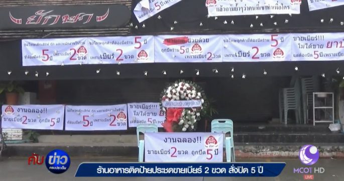 ร้านอาหารที่เชียงใหม่วางพวงหรีด และติดป้ายประชด ถูกสั่งปิด 5 ปี หลังขายเบียร์ 2 ขวด ด้านนายอำเภอเมืองเชียงใหม่ ยืนยันไม่ได้กลั่นแกล้ง แต่ร้านเปิดขายเครื่องดื่มแอลกอฮอล์ เกินเวลากฎหมายกำหนด