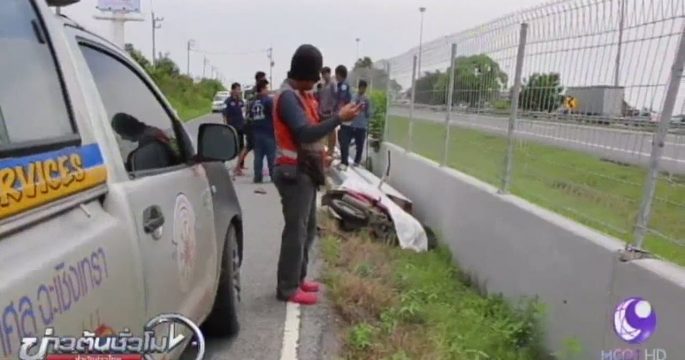 เยาวชนอายุ 14 ปี ขี่รถจักรยานยนต์มากับเพื่อนแต่เกิดอุบัติเหตุหลุดโค้ง ชนเสาปูนที่วางกองไว้ข้างทาง บริเวณถนนเลียบมอเตอร์เวย์ หลังนิคมอุตสาหกรรมเวลโกร์ว