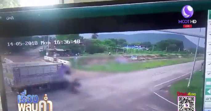 กล้องวงจรปิดจับภาพ รถบรรทุก 6 ล้อชนแล้วหนี หนุ่มใหญ่ขี่จักรยานยนต์ดับคาที่ 1 เพื่อนซ้อนท้ายรอดตายปาฏิหาริย์