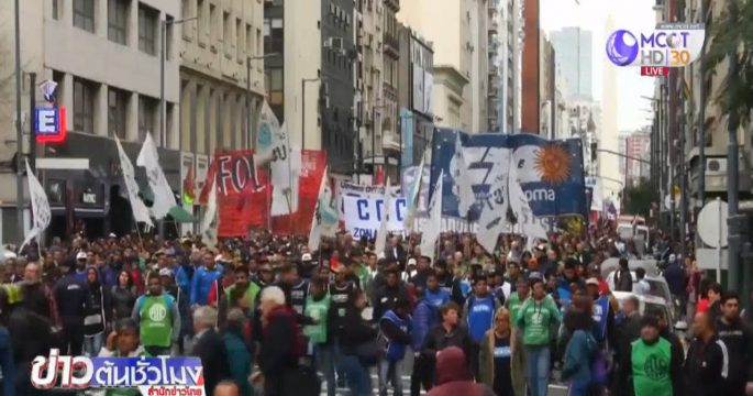 ชาวอาร์เจนตินา เดินขบวนไปตามท้องถนนในกรุงบัวโนสไอเรส เรียกร้องขอขึ้นค่าแรง ขณะที่เงินเปโซกำลังอ่อนค่าลงอย่างรุนแรง