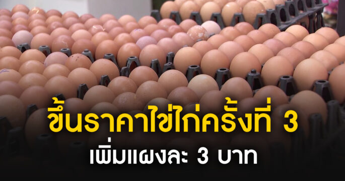ขึ้นอีกแล้ว! ไข่ไก่ปีนี้ปรับขึ้นราคาเป็นครั้งที่ 3 โดยล่าสุดขึ้นอีกฟองละ 10 สตางค์ ซึ่งจะทำให้ราคาไข่ไก่สูงขึ้นแผงละ 3 บาท มีผลพรุ่งนี้ (17 มี.ค.) ผู้เลี้ยงไก่ไข่แจงต้นทุนสูงขึ้นมาก ขณะที่ผู้ค้าปลีกโอดไข่ไก่ขึ้นราคา ทำให้เบอร์ใหญ่ขายยาก ส่วนเบอร์เล็กอย่างเบอร์ 4 เบอร์ 5 เริ่มขาดตลาด