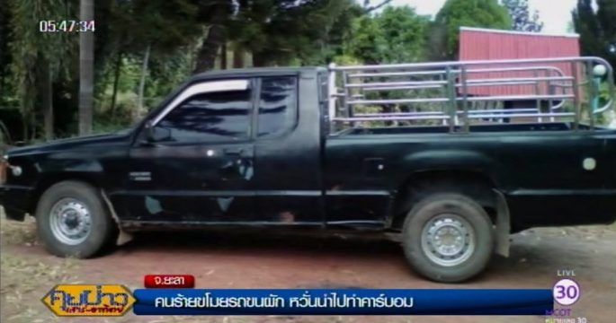 คนร้ายโจรกรรมรถกระบะขนผัก กลางตลาดสดกลางเมืองยะลา เจ้าหน้าที่ปิดเมืองหาหวั่นคนร้ายนำรถประกอบคาร์บอมบ์