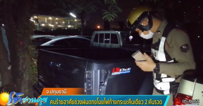 คนร้ายอาศัยช่วงฝนตก ขโมยไฟท้ายกระบะคืนเดียว 2 คันรวด บริเวณคอนโดฯ แห่งหนึ่งใน อ.คลองหลวง จ.ปทุมธานี