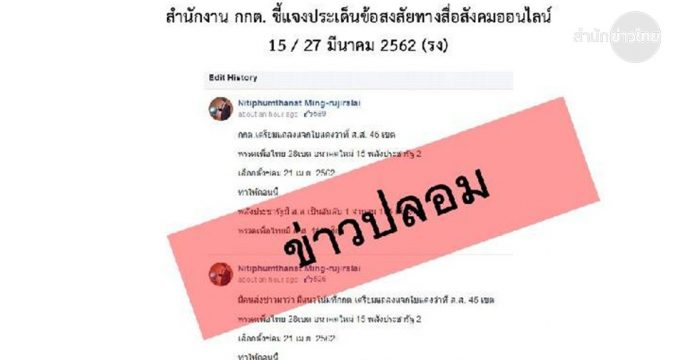 ตำรวจ ปอท.สอบ2 กกต.โดนข่าวปลอมโจมตี โฆษก บก.ปอท.เตือนอย่าแชร์ต่อจะมีความผิด พ.ร.บ.คอมพ์ฯ ไปด้วย