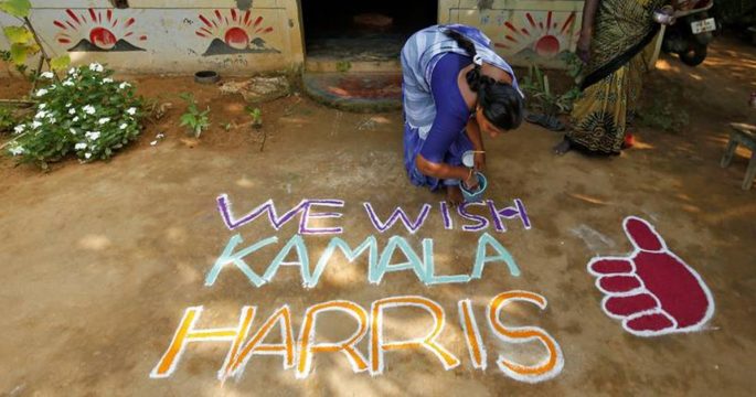 ชาวบ้านที่บ้านเกิดบรรพบุรุษของนางคามาลา แฮร์ริส ผู้สมัครชิงตำแหน่งรองประธานาธิบดีสหรัฐของพรรคเดโมแครตทาสีเป็นข้อความอวยพรบนท้องถนนให้เธอคว้าชัยชนะในศึกเลือกตั้งประธานาธิบดีสหรัฐ