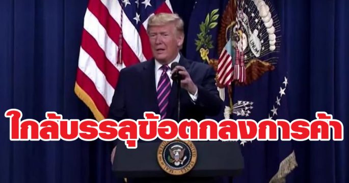 ประธานาธิบดีโดนัลด์ ทรัมป์ ผู้นำสหรัฐทวีตข้อความในวันพฤหัสบดีประกาศว่ารัฐบาลของเขากำลังใกล้จะบรรลุข้อตกลงทางการค้ากับจีนแล้ว