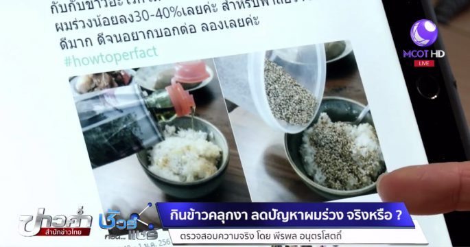 บนสังคมออนไลน์มีผู้แชร์เคล็ดลับลดปัญหาผมร่วง แค่รับประทานข้าวคลุกกับงา เรื่องนี้จริงหรือไม่ ? ติดตามจากศูนย์ชัวร์ก่อนแชร์