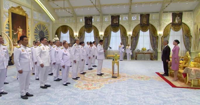 พระบาทสมเด็จพระเจ้าอยู่หัว พระราชทานพระบรมราชวโรกาสให้คณะรัฐมนตรีชุดใหม่ เข้าเฝ้าทูลละอองธุลีพระบาท เพื่อถวายสัตย์ปฏิญาณก่อนเข้ารับหน้าที่