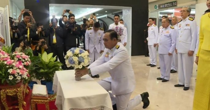 นายกรัฐมนตรีและภริยา พร้อมคณะรัฐมนตรี ทูลเกล้าฯ ถวายแจกันดอกไม้หน้าพระบรมฉายาลักษณ์พระบรมราชชนนีพันปีหลวง และลงนามถวายพระพรให้ทรงมีพระพลานามัยแข็งแรงสมบูรณ์