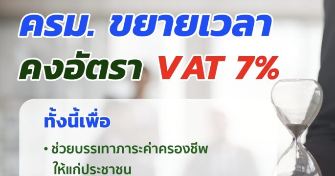 ครม.เห็นชอบขยายระยะเวลาการลดอัตราภาษีมูลค่าเพิ่มเหลือ 7% ออกไปอีก 1 ปี สำหรับการขายสินค้า การให้บริการ หรือการนำเข้าทุกกรณี ตั้งแต่วันที่ 1 ต.ค.66 – 30 ก.ย.67