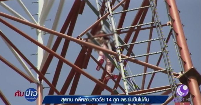 สุดทน หญิงสาวปีนเสาสัญญาณวิทยุสูงกว่า 30 เมตร ในสถานีตำรวจภูธรภาค 3 ขอความเป็นธรรมคดีดาบตำรวจข่มขืนหลานสาววัย 14 ปี ผ่านไปเป็นปีคดีไม่คืบ